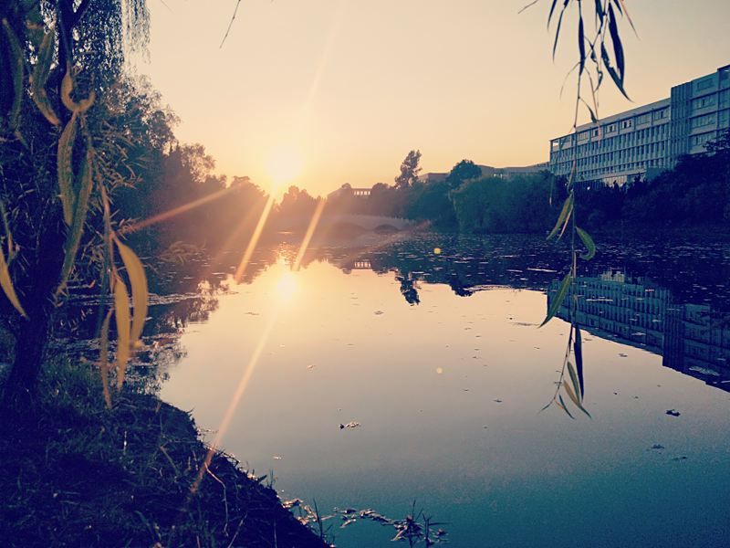 校园秋意正浓当仲夏的烈日变为深秋的暖阳你是否会回味这一整个秋天校园给你的惊喜以及你和秋天相处的每一个瞬间那夏日的荷还调皮地不想离去就连云朵也格外眷恋校园的蓝天和湖面一个不小心它们就会溜到你的记忆深处在某一天让你想起这个秋天曾有云朵划过天际曾有湖水一样清澈的眼睛曾有一片荷塘曾有一群...
