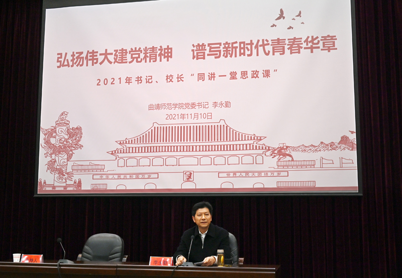 “在‘两个一百年’奋斗目标的历史交汇点,你们来到曲师,具有深刻意义,我看到你们正在用勤奋努力融入丰富充实的大学生活,开启求学深造奉献的人生篇章……”11月10日下午,学校党委书记李永勤教授为2021级学生开展“同讲一堂思政课”教学活动。5186名学生在主会场和102个视频分会场聆听。活动由党委副书记徐显敏主持...