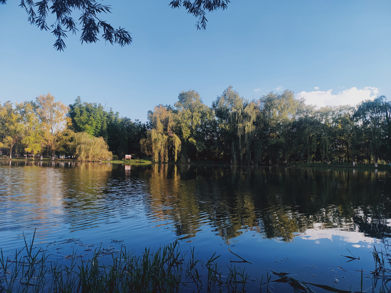 也格外眷恋校园的蓝天和湖面