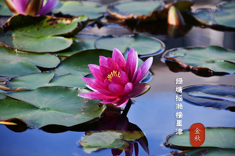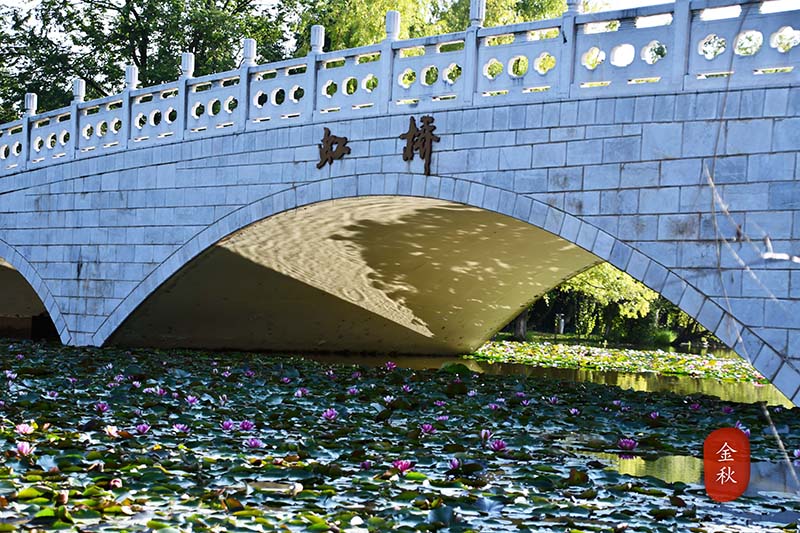 南湖虹桥下的睡莲,在落日的余晖中,尽显高洁脱俗,粉色的花朵飘在水中,就像一个个漂亮的小灯笼。南湖旁边的学子,在休息时总要到虹桥上驻足观赏一番,学习的疲倦也随风飘散。