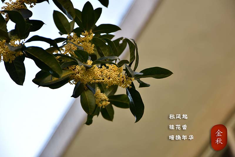 “暗淡轻黄体性柔,情疏迹远只香留。”校园中有金桂、银桂等多个品种,洁白的,金黄的,巧致的花朵,在秋风中洋溢着对秋的热爱。一阵清风,一树米白在风中轻舞,飘落到地上,留下清雅的芳香。