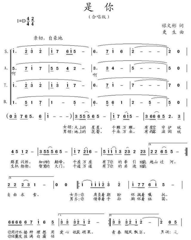 “是你把小马驹变成骏马,是你把丑小鸭变成天鹅,是你把小树苗变成栋梁,是你把种子浇灌成花朵,你眼望桃李芬芳,你豪迈无怨。”在《是你》这首作品中,张更生用音乐展现了教师崇高和伟大的形象,也表达了他对教师这一职业的无限热爱。