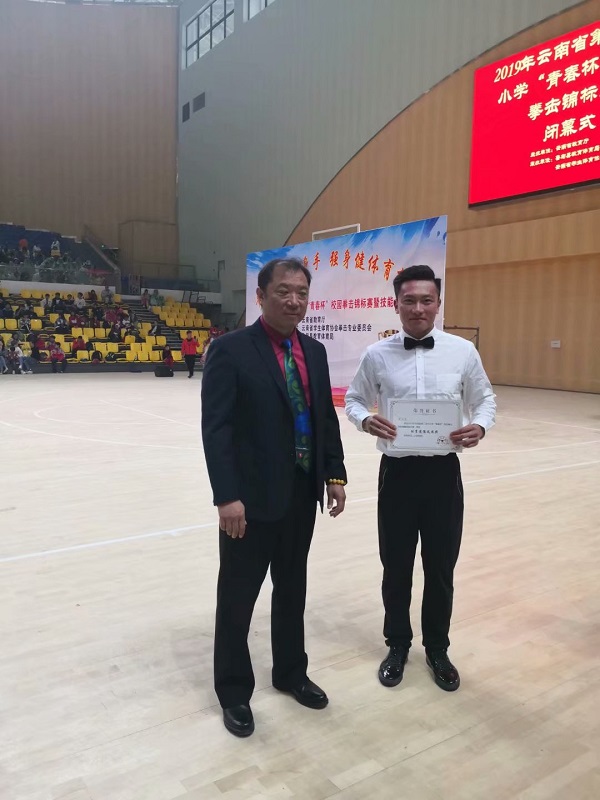学生金玉华在2019年云南省中小学拳击锦标赛中获得优秀拳击裁判员称号。