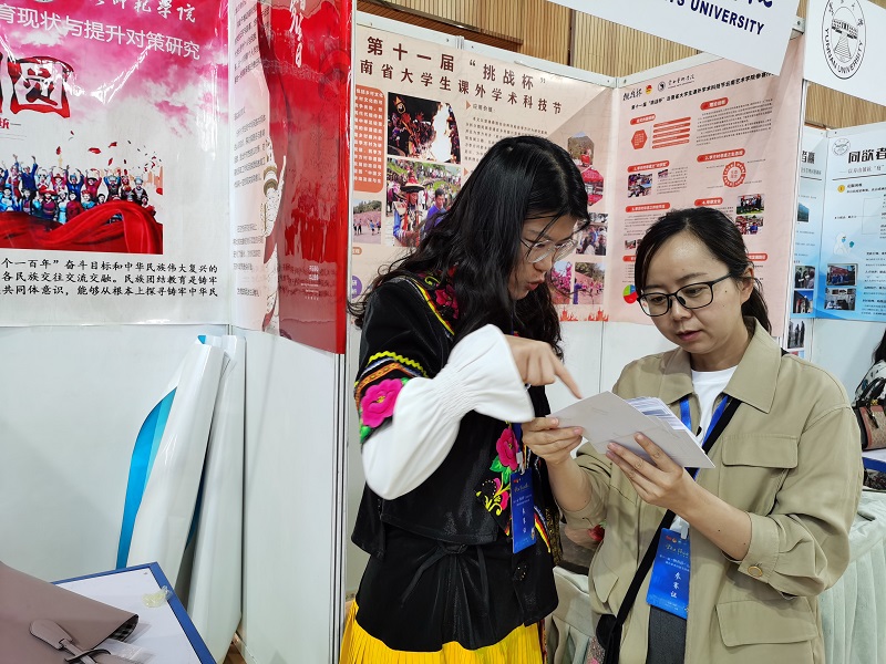 张梅芬(右)指导学生参加第十一届“挑战杯”云南省大学生课外学术科技节。