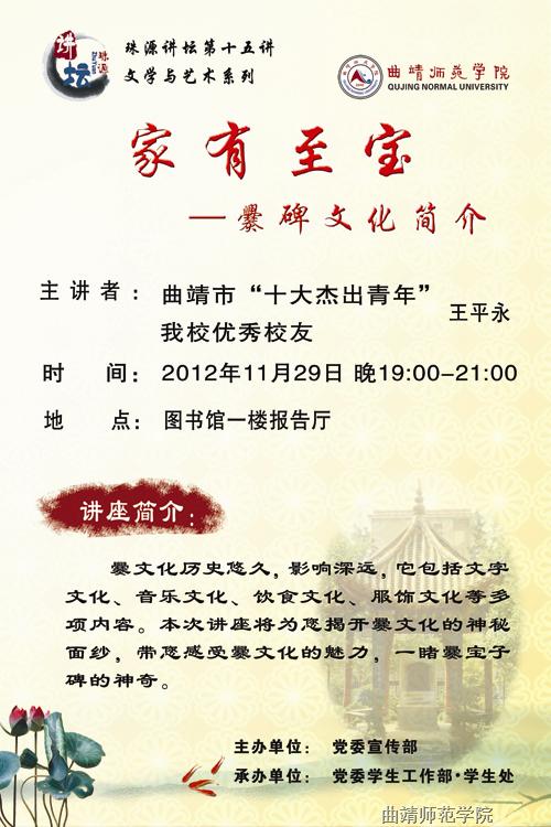 讲 题:家有至宝——爨碑文化简介
