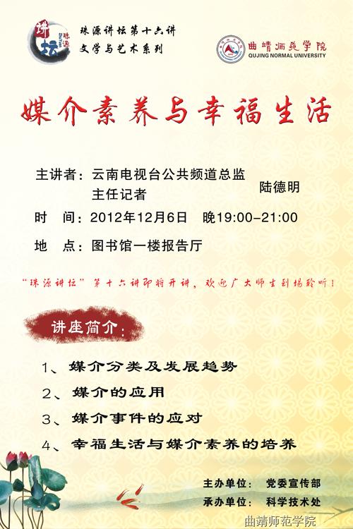 主 讲 人:云南电视台公共频道总监、主任记者 陆德明
