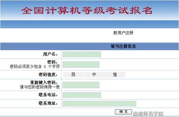 3、按要求逐一填写完整信息,点击“确定”(记住用户名和密码以便登录报名使用),5秒后自动回到“全国计算机等级考试报名”窗口(图3)。