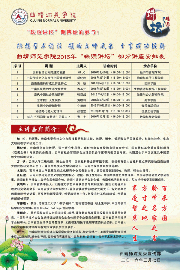 2016年“珠源讲坛”部分讲座安排