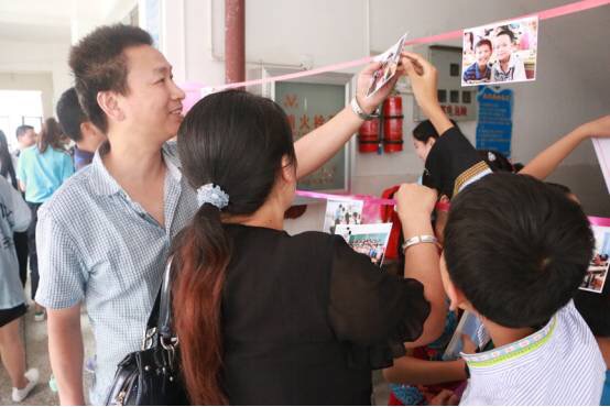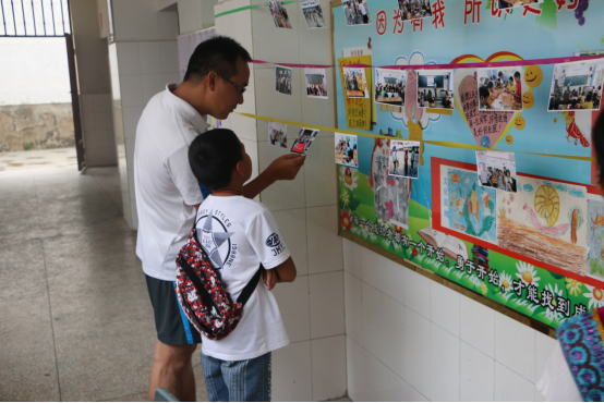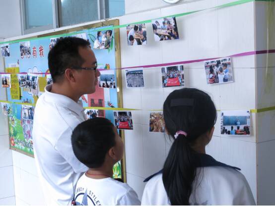 学生向父母介绍自己的活动照片