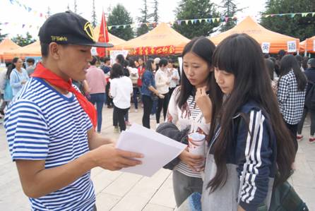 9月21日,bat365中文官方网站2016年团委、学生会、大学生社团纳新活动在迎宾大道举行。团委、学生会14个部门和60个学生社团参与纳新,吸引了近4000余名同学前来咨询和报名。