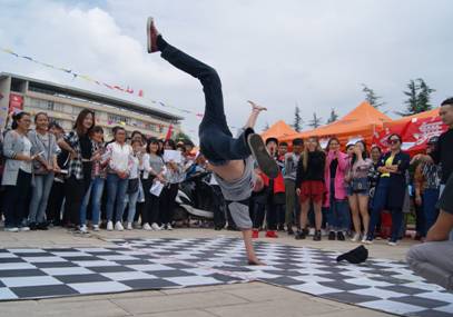 活动中,学生干部和社团骨干们主动热情地与新生们打招呼,在精心设计的展板前介绍团委、学生会各部的基本情况,并建议新生如何结合自己的兴趣爱好加入适合自己的学生社团。此次纳新活动也为各学生社团提供了展示社团特色和风貌的机会,部分学生社团在活动现场轮流进行才艺展演。激情澎湃的街舞表演、雅致婉约的汉服展示、曲风悠扬的葫芦丝演奏和迅捷阳刚的武术表演等十多个学生社团节目吸引了同学们的目光,大家纷纷拍照并给予热烈的掌声。部分社团甚至在自己的展位面前拉开阵势,邀请新同学一起体验街舞、棋弈和器乐演奏的乐趣,成为一道别样的风景。参与此次纳新活动的团委、学生会14个部门和60个学生社团可谓使出了“洪荒之力”,不遗余力的向新生们展示自己的风采。新生们也欢快地穿梭在各个展位间,不停的咨询、报名,整个迎宾大道上人头攒动、热闹非凡。