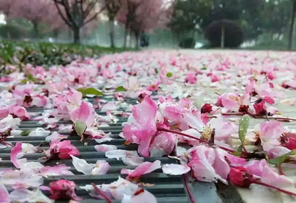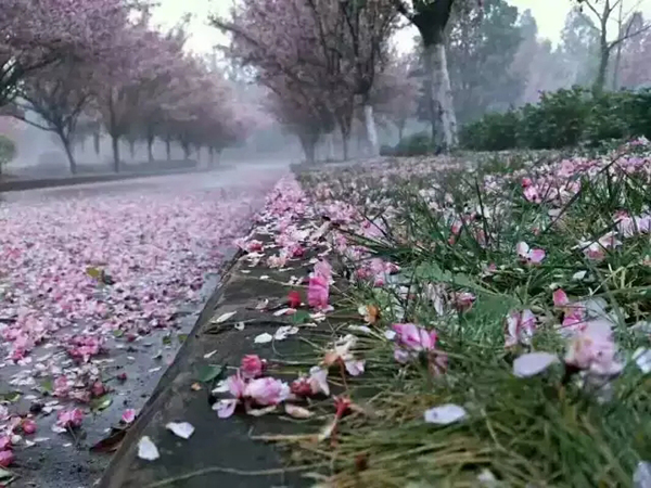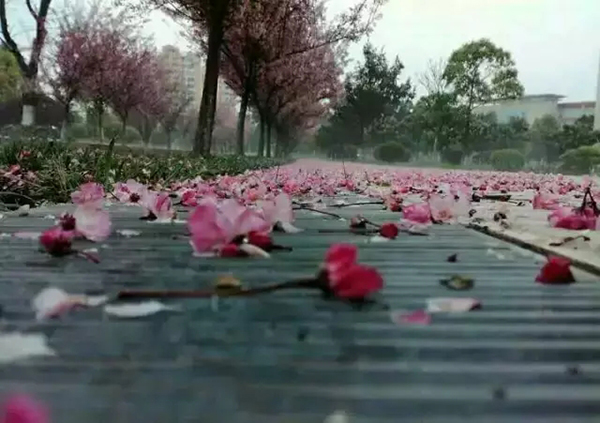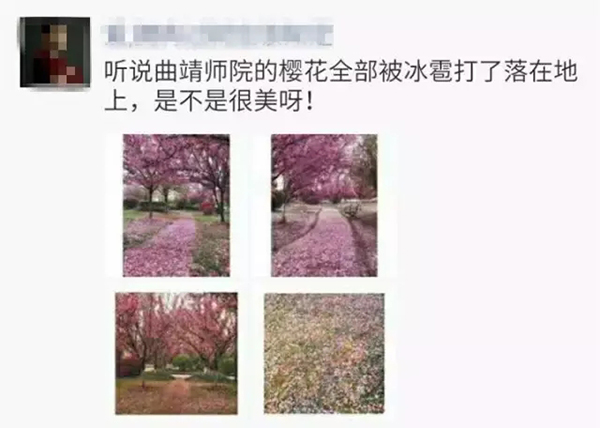 曲靖昨天晚上下了一场冰雹,曲靖师院昨晚却下了一场樱花雨!