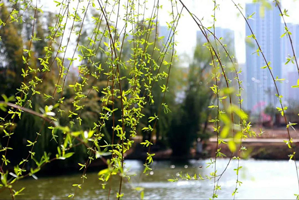 春天来了!,沉睡了一冬的柳树苏醒了,细细长长的枝条上泛出一层新绿。微风吹过,摇曳的是柳枝,激荡的是心情!
