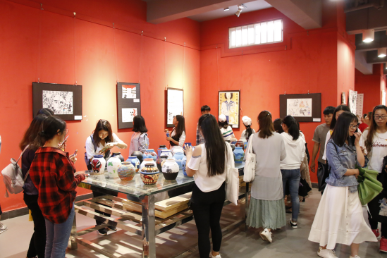展会上,书法、绘画、剪纸、陶瓷彩绘、手工制作等作品惊艳亮相。绘画作品构图别具匠心,创意与色彩完美融合,细腻生动的描绘了多姿多彩的校园风景;陶瓷彩绘作品婉丽多姿,图案各异,文化气息浓厚,令人陶醉;DIY手工设计作品以绿色、创新为主题,将废旧物品做成精美的手工艺品,既美观又环保实用;法作品以社会主义核心价值观为内容,充分彰显师范专业特点;创意剪纸秀作品以十九大精神为主题,弘扬工匠精神。整个展馆里人潮涌动,有的驻足欣赏品味,有的窃语交流,有的拿出手机拍照保存留念,现场师生都沉浸在同学们的创意和才华里。