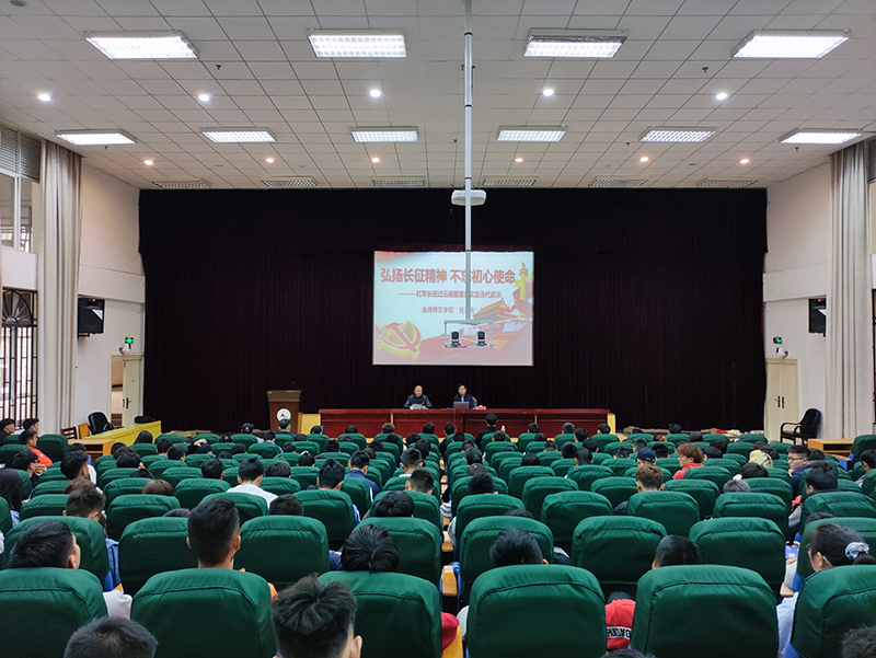钱润光教授谈及历史,对比当下,结合史实,联系学校正在开展的“守初心、担使命,学榜样、创一流”主题实践活动,围绕三方面进行了专题讲授:一是中央红军究竟从哪里来?要到哪里去?他从红军长征前与国民党军的最后一战——广昌之战讲起,系统讲述了于都出发、湘江血战、遵义会议、四渡赤水、兵临贵阳、威逼昆明等一路征战到达曲靖的重要史实。二是中央红军在曲靖究竟上演了怎样的传奇?他以讲故事的形式,主要讲述了中央红军在曲靖西山乡关下村发生的“龙云献图”的传奇故事,以及召开三元宫会议,作出“西进北上、迅速抢渡金沙江”的战略决策的重要史实。三是长征精神对当代大学生究竟有何启示?通过讲授发生在长征途中的“丰碑”、最后一次党费、过班佑河、半条被子、陈觉绝笔信以及绝命后卫师长陈树湘等一个个震撼人心的鲜活故事,深刻阐释了长征精神的丰富内涵及对当代大学生的启示。