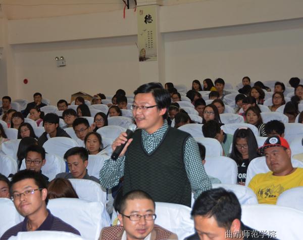 讲座中,苏升乾教授把人的一生分成出生、少年、青年、老年若干个阶段,并以一种富有哲理的思维深刻讲述了在每个阶段中,成长的特征与角色转变的重点,带领大家从一个客观角度去认识和评述人在各个阶段的成长与烦恼,总结提出人生成功离不开时代舞台、社会规律和生长约束的观点。在提及幸福时,苏升乾结合自己多年的人生感悟细致解说了幸福的内涵。他说:“幸福是主观需要与满足感的关系,它不是一个产品,而是一个过程,一个为目标奋斗的过程!”,他用自己上《百家讲坛》的切身体会勉励同学们:“如果不持续的努力和奋斗,就算机会来到我们面前,我们也难以抓住!”