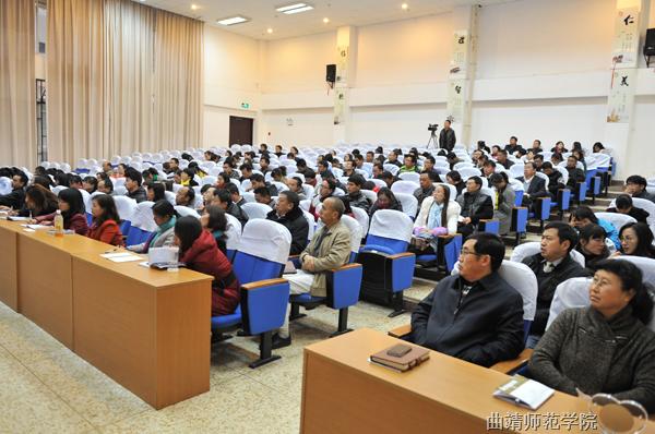 本次讲座由党委宣传部主办,继续教育学院承办,“国培计划”(2014)初中语文、小学科学、初中化学、中小学美术培训班的项目负责人、学科专家、班主任及250余名学员听取了讲座。