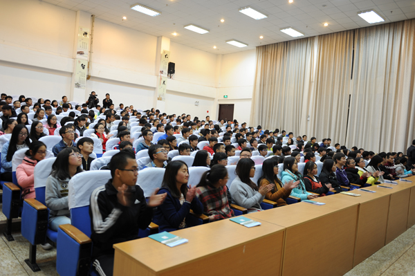 讲堂在全场师生共同奏唱《好人就在身边》《好人心安》两首旋律优美的道德歌曲和诵读道德经典中拉开序幕,真切感人的歌词和耐人寻味的经典,再一次洗涤了师生们的心灵。讲座一开始,杨纪武教授以“何谓文化?何谓中华文化?”的提问方式启发听众思考。讲座中,杨纪武以儒家文化为主导线索,紧紧围绕何谓文化与中华传统文化、中华传统文化对于中华民族的永恒价值等六个方面来阐述了中华传统文化的传承与发展。杨纪武鼓励同学们学习传统文化,不断提升文化素养,并通过对“气节、责任、群体意识”的具体阐述来激发师生的爱国情怀、社会责任感和集体主义理念。本场讲座内容丰富多彩,观点深刻新颖,讲解深入浅出,赢得了现场师生阵阵热烈的掌声。