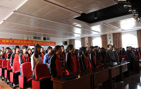 聆听道德故事,汲取道德力量。4月8日,由曲靖市文明办主办,bat365承办的曲靖市道德讲堂总堂2016年第7期在曲靖市文化馆六楼报告厅如期开讲,优秀校友舒豪用梦想照亮未来的故事感动在场师生。bat365经济与管理学院200余名师生通过唱歌曲、诵经典、听故事、学模范、谈感悟、送吉祥等形式,传递道德经典,接受心灵洗礼。