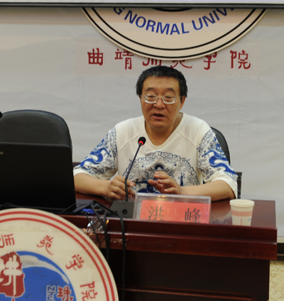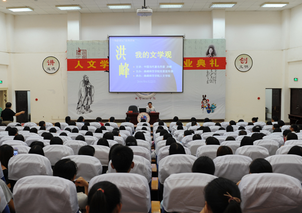 洪峰以自己的人生经历切入讲题。讲座中,洪峰采取独特的互动方式与同学们进行交流。有同学问他为什么要退出中国作家协会而隐居乡下?洪峰解释说,自己是选择一种寂寞,一种远离尘嚣的生活。他认为生活在乡村,能更深切地体会到乡村的现实,对农民的生存现实、意识有更切身的体会。在谈到和公众舆论打交道时,洪峰指出,自己并不是一个善于和公众舆论打交道的人,但他坚信做自己就好,自己想什么就写什么,在创作中自己有很大的自由空间。当同学问他为什么放弃写作时,洪峰说,其实他从未想过要终止自己的写作,只是写作不可能始终保持创造力,如果硬拧着来,免不了制造垃圾,自己就是为了尽可能地少产生垃圾。