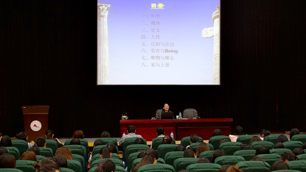 互动环节,刘教授对学生的问题作了一一解答。刘教授告诫同学们:人是由身体与精神构成的,正是精神,使人与动物不同,所以我们大学生不仅要做有知识的人,更要做一个有文化、有道德的真正意义上的人。