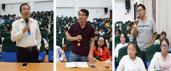 黄永钢结合自身教学和生活实际,分享了他在纽约市立大学布鲁克林学院开设中国传统文化课程的经历。他详细讲述了当前中外教育核心课程的差异,及围绕孔子、孟子、老子等国学经典人物展现了中国传统文化的整体性和延续性两大特点。他提到国外学生对中华优秀传统文化学习兴趣浓厚,对现有的教育、道德观、价值观、人生观等问题有了新的认知。互动环节,师生们就中外传统文化课程教学内容、教学设计等问题进行了深入的探讨交流。