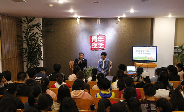 3月29日晚,曲靖市公安局刑侦支队警官安慰做客第131期“青年夜话”,与同学们共话“防范信贷诈骗,构建和谐校园”,引导同学们增强防范意识,提高识骗防骗能力。