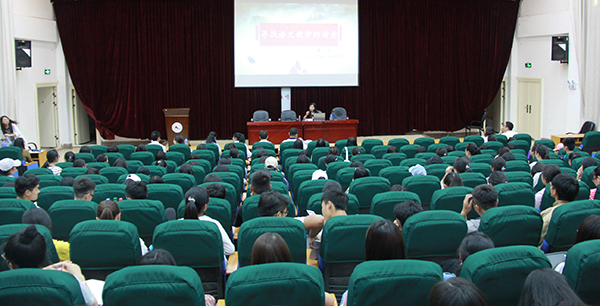 5月17日晚,由党委宣传部主办,人文学院承办的珠源讲坛第128讲暨中小学名师大讲坛第4讲在图书馆一楼报告厅举行,首批国家骨干教师、中学语文特级教师、“诗意语文”倡导者董一菲应邀做题为“寻找语文教学的诗意”的专题讲座,中文系副主任何艳丽老师主持讲座。