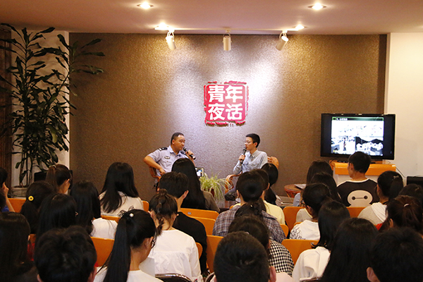 5月24日晚,国家二级心理咨询师、曲靖市强制隔离戒毒所收戒大队副队长吕鸿宇做客bat365中文官方网站第135期“青年夜话”,在MM基地与同学们共话“珍爱生命,禁毒有我”,引导同学们抵制毒品侵害,珍惜美好年华。