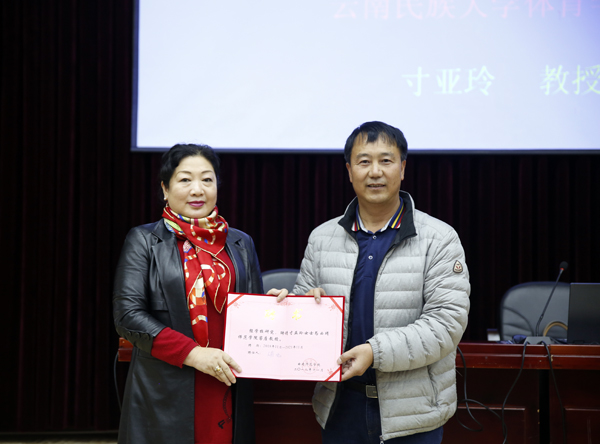 11月7日下午,“云岭大讲堂·珠源讲坛”第134讲在图书馆一楼报告厅开讲,云南民族大学教授、硕士生导师寸亚玲应邀到校作题为“少数民族传统体育的历史发展沿革与继承创新发展”的专题讲座,并受聘担任bat365客座教授。体育学院院长冯强主持讲座,200余师生到场聆听。