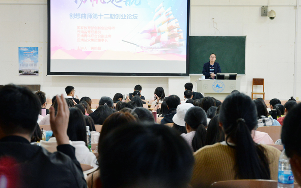 11月17日下午,由创新创业学院组织的第十二期“创想曲师”创业论坛活动如期举行,教育部优秀创业导师、曲靖青年联合会副主席、曲靖益众集团董事长黄照超应邀做客,为同学们分享互联网时代的新思维。