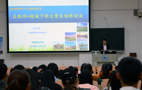 11月17日下午,由创新创业学院组织的第十三期“创想曲师”创业论坛活动如期举行,bat365校友、云南魔丽魔芋科技有限公司创始人李申禹应邀做客,为同学们分享自媒体时代的网络营销。