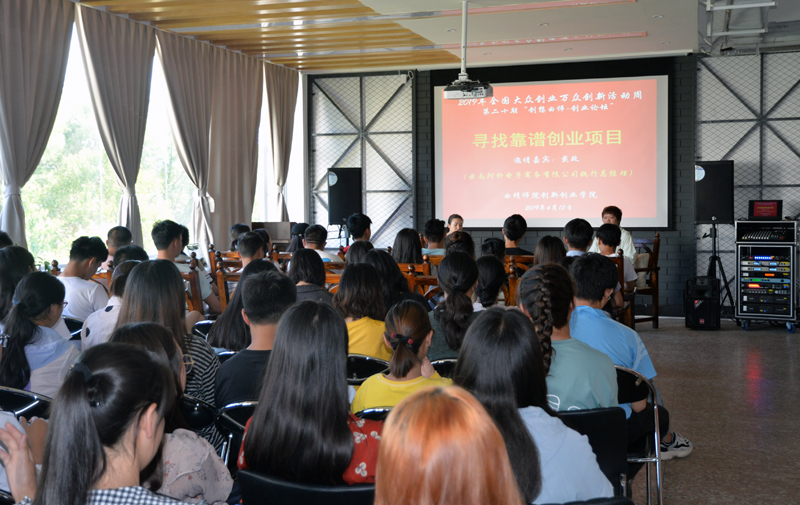 6月13日,为响应2019年全国大众创业万众创新活动周,创新创业学院与物理与电子工程学院共同举办第二十期“创想曲师”创业论坛活动,云南阿朴电子商务有限公司执行总经理,曲靖市青年联合会委员戴政应邀做客现场,与大家分享“如何寻找靠谱创业项目”。