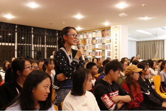 互动环节,同学们就“怎样参加社会实践活动”“如何让大学生活变得有意义”等问题踊跃提问,三位学生代表结合自身经历一一作答,她们的精彩回答赢得现场同学们热烈的掌声。