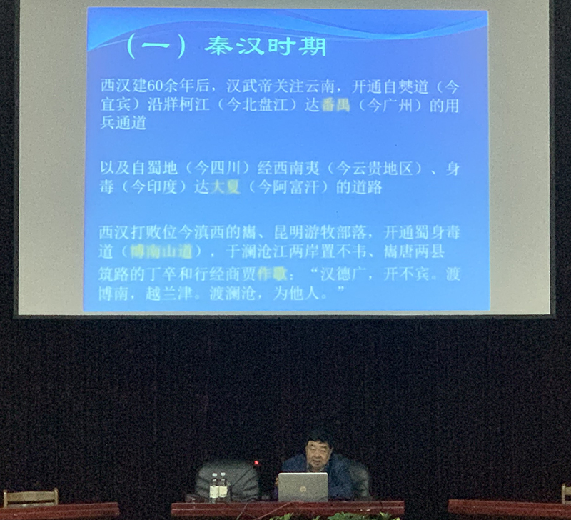 方铁教授以横纵向交叉并行的讲课方式,引经据典、侃侃而谈。他详细介绍了滇西地区的地理位置、风土人情和滇西地区政治、经济、文化、军事、交通各方面发展的历史沿革以及文化常识,把古代历史与当今社会生活紧密结合,阐述了滇西地区在历史发展中的重要作用。