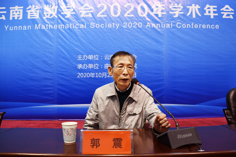 郭震在致辞中,对曲靖师院为办好此次年会作出的努力表示感谢,他说,曲靖师院在做好常态化疫情防控工作的同时,精心准备,确保了与会专家学者汇聚曲靖开展交流研讨。他强调,云南省数学会旨在促进云南省各高校数学工作者的学术交流与合作,促进云南省数学界与国内数学界的联系,同时促进云南省基础教育发展。学会每年邀请省内外专家学者开展20余场学术报告,希望通过高质量的学术报告和交流研讨,推动云南省数学学科发展。