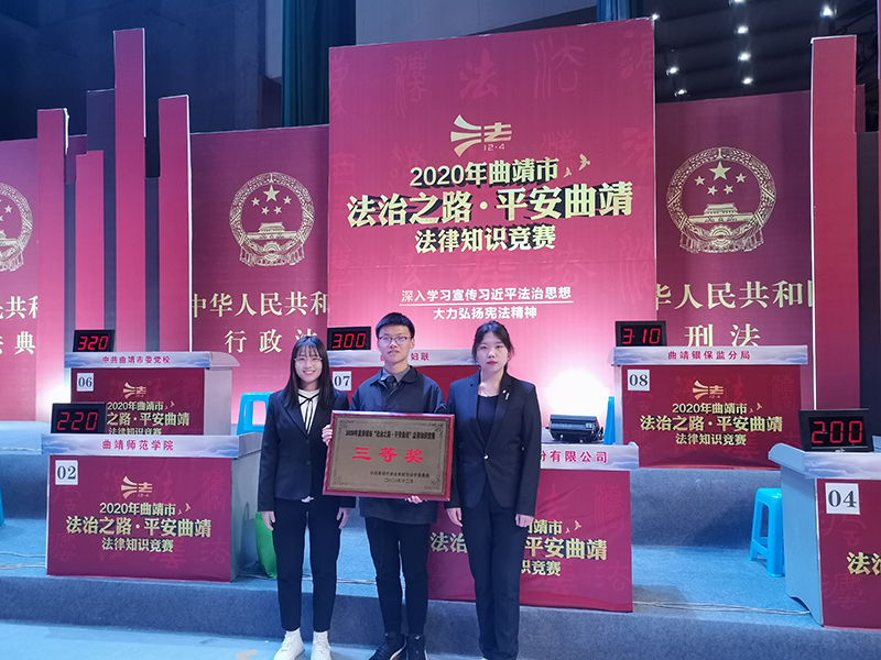 12月3日至4日,法律与公共管理学院选派学生,代表学校参加2020年“法治之路·平安曲靖”法治知识竞赛,以小组第一的成绩晋级决赛,获三等奖。