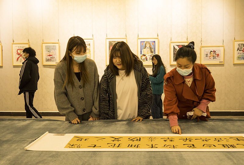 围绕活动主题,同学们直抒胸臆、浓墨重彩,或用漫画故事的诙谐视角表达禁毒的重要性,或用书画作品表现毒品的危害,作品表现方式不拘一格,每一幅作品都让人眼前一亮、耐人寻味,吸引了现场师生驻足细细品味。