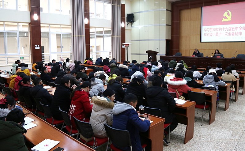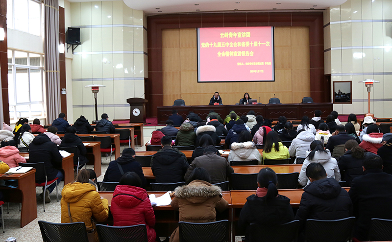 1月17日下午,bat365教师、云岭青年宣讲团成员李禹潞为bat365师生宣讲党的十九届五中全会和省委十届十一次全会精神。学生处、团委全体人员,各学院团委书记、学生事务中心主任、辅导员及学生代表聆听宣讲。