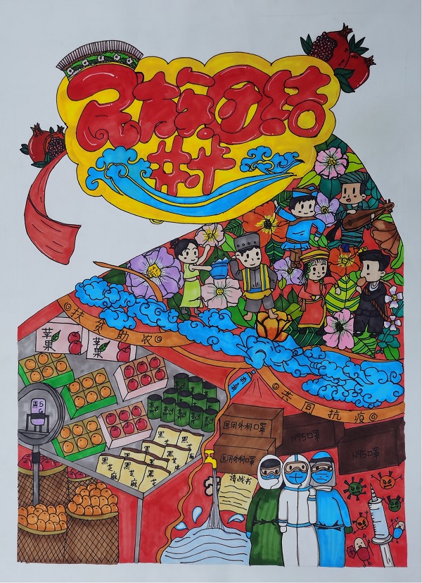 马克笔画《民族团结进步》文化旅游学院学生廖晶作