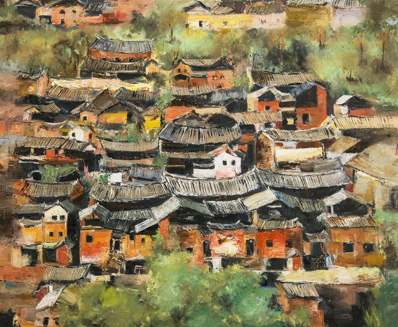 油画《彝家小镇》美术学院学生皮瑞玲作