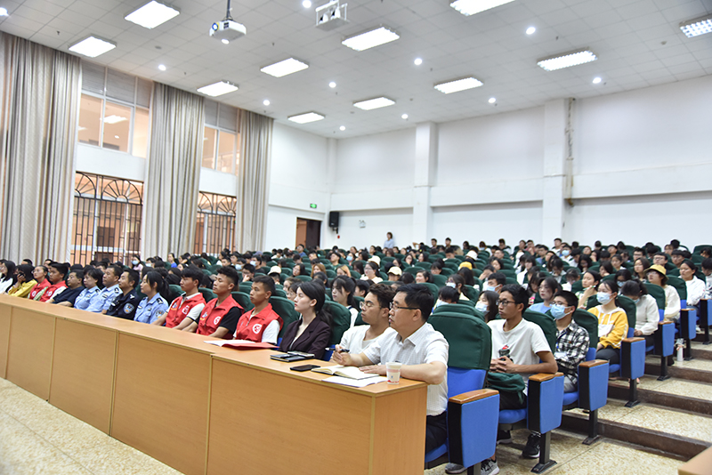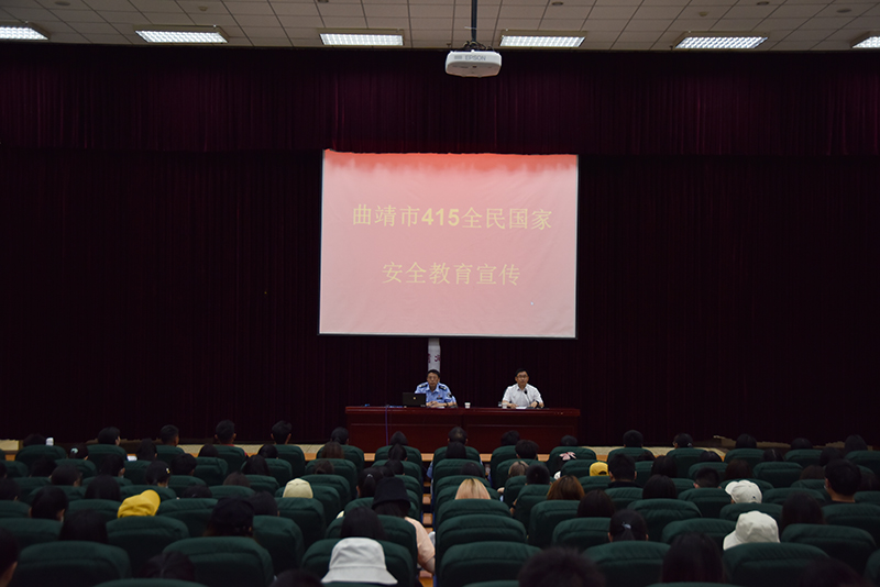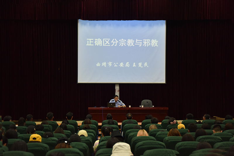 4月14日下午,在“4.15”第6个国家安全教育日到来之际,曲靖市公安局国内安全保卫支队副支队长王楚民为bat365师生带来题为《正确区分宗教与邪教》的专题讲座。讲座由bat365党委委员、党委统战部部长钱润光主持,全校近300余名学生聆听了讲座。