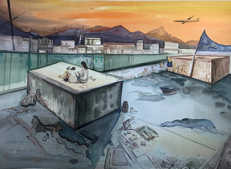 绘画作品《天台》 美术学院岑稼贵作