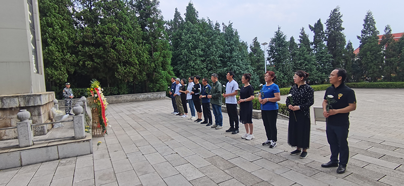 为深入推进党史学习教育,缅怀革命先烈,了解革命烈士的英勇事迹,弘扬爱国主义精神,继承和发扬党的优良传统,5月19日下午,教育教学质量监控中心党支部组织12名教职工前往宣威来宾虎头山烈士陵园,开展“学党史、悟思想、守初心、担使命”主题党日暨烈士陵园祭扫活动。