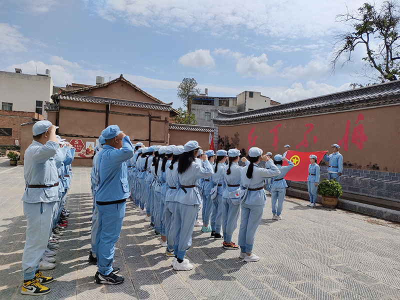 参观结束后,全体同学身着红军装,高唱红歌,重走当年红军战士行军路。在素质拓展训练中,同学们团结互助、相互配合,成功通过了“飞夺泸定桥”“巧过生死网”“抢渡金沙江”“翻越夹金山”等系列挑战。