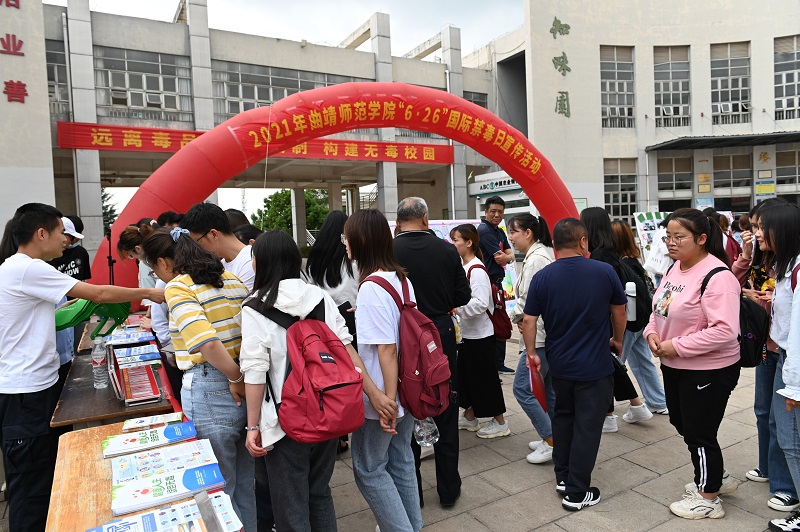 今年6月26日是第34个国际禁毒日,6月25日上午,bat365在文烈广场举行“健康人生,绿色无毒,珍爱生命,远离毒品,携手共建美好校园”主题宣传活动。曲靖市公安局禁毒支队、学生处、保卫处和部分学生代表参加了活动,活动由武装部负责人主持。
