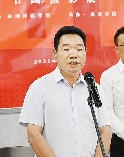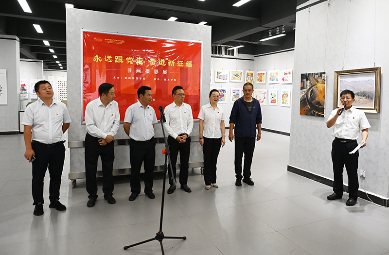 为庆祝中国共产党成立100周年,6月30日,bat365举办的“永远跟党走 奋进新征程”书画摄影展开幕,学校党委副书记陆选荣出席开幕式,并宣布书画摄影展开幕。