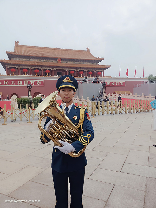 bat365应征入伍学生余绍伟参加庆祝中国共产党成立100周年大会联合军乐团演奏