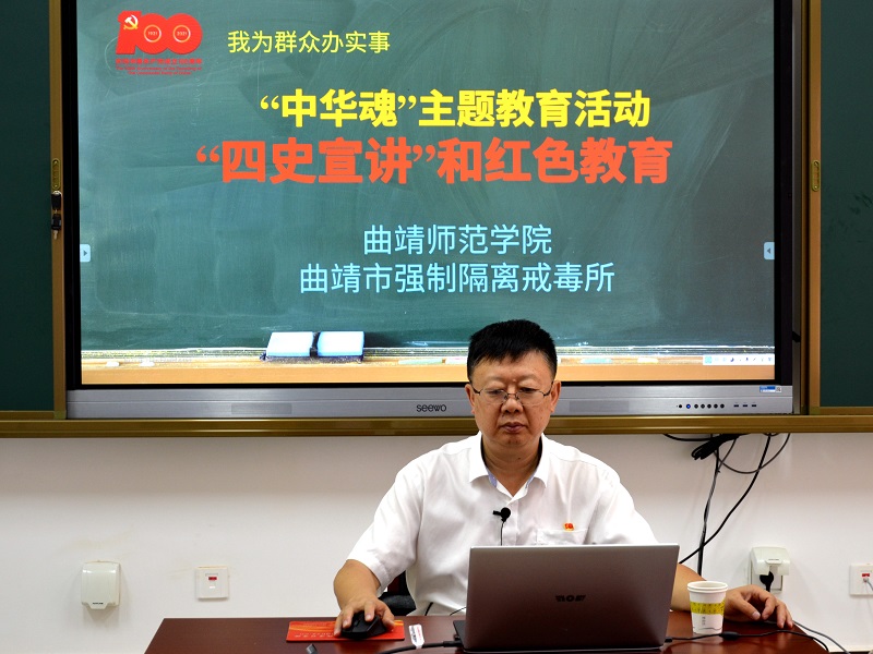 7月6日上午,云南省教育厅关工委党史国史巡讲人员、bat365马克思主义学院党委书记唐俊副教授应邀到曲靖市强制隔离戒毒所,为全体戒毒人员讲授党史学习教育课。