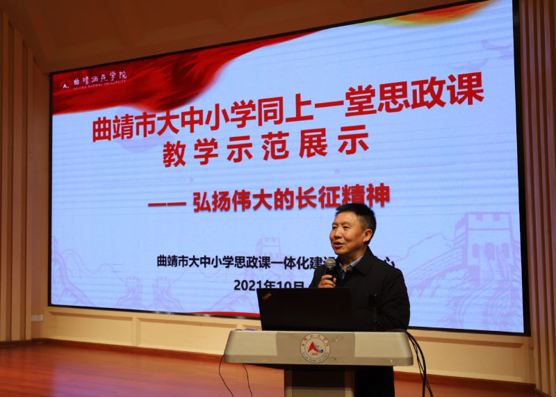 据悉,统筹推进大中小学思政课一体化建设,是党中央、云南省委、省委教育工委深化新时代学校思想政治理论课改革创新的战略部署,是各级教育主管部门、各类学校坚持立德树人、培育时代新人的重要工程,具有深刻的时代意蕴、丰富的价值内涵、科学的逻辑理路和鲜明的实践指向。本次会议,旨在探索构建横向协同、纵向衔接的大中小学思政课一体化建设体系,探讨创建曲靖市大中小学思政课全面育人、全员育人、全程育人新格局,全面提升思政课质量和人才培养水平,共同推进曲靖市大中小学思政课一体化建设。